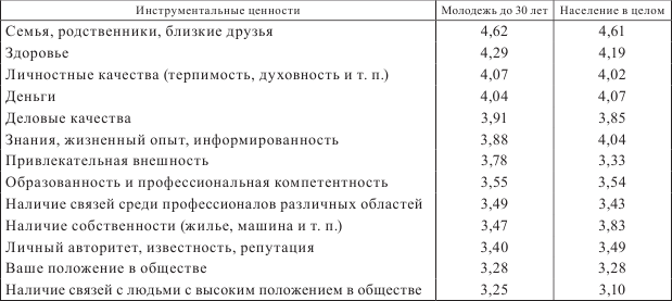 Таблица 2. Инструментальные ценностные приоритеты белорусской молодежи (средний балл[3])