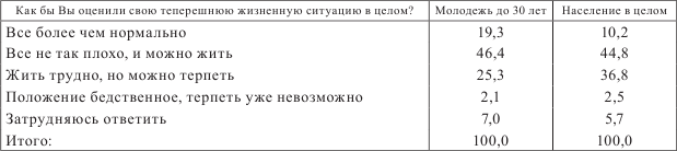Собственную жизненную ситуацию молодые люди оценивают достаточно позитивно по сравнению с населением в целом (табл. 5).