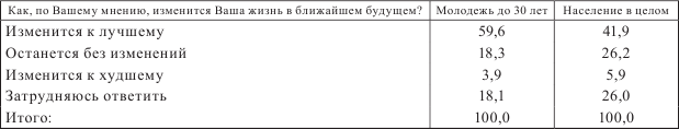 Молодежь Беларуси достаточно оптимистично смотрит и в будущее, больше половины молодых респондентов считают, что в ближайшем будущем их жизнь изменится к лучшему (табл. 6).