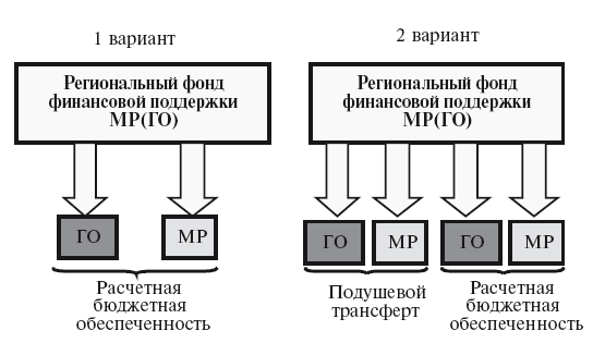 В соответствии с положениями Федерального закона от 12 октября 2005 г. № 129-ФЗ при формировании и утверждении проектов бюджетов субъектов Федерации на 2006–2008 гг. дотации из фонда могут распределяться с использованием показателей фактических или прогнозируемых доходов и расходов бюджетов муниципальных районов (городских округов):