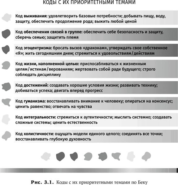На рис. 3.1 представлены описанные коды с их приоритетными темами по Беку. Лидерам чрезвычайно важно понимать эти коды, чтобы уметь высвобождать человеческий потенциал, заключенный в системах.