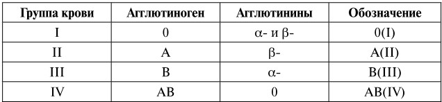 Антигены, по которым отдельные индивидуумы или группы особей одного вида различаются между собой, являются изоантигенами. Изоантигены, генетически связанные, объединены в группы, получившие следующие названия: система АВО, резус и др. В плазме человека всегда содержатся естественные, полные, холодовые изоантитела к агглютиногенам А и В. Агглютинин анти-А – α-агглютинин, а агглютинин анти-В – β- агглютинин (табл. 6).