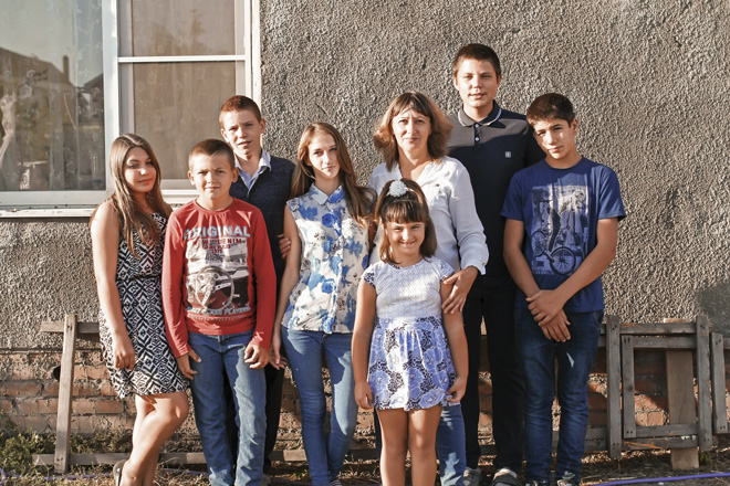 НА ФОТОГРАФИИ СЛЕВА НАПРАВО: Аня, Илья и Миша (братья), Эльвира, мама Наталья, Вика, Ваня и Лёша. Папа был на работе и на фотосессию не попал.