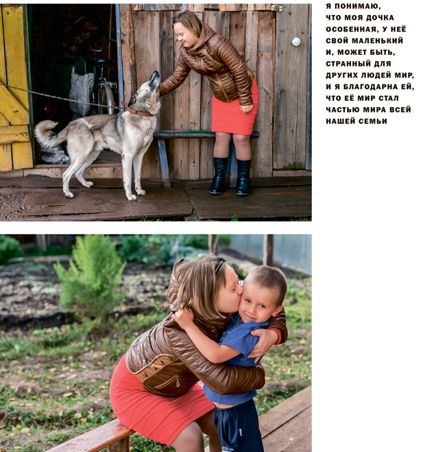 Я понимаю, что моя дочка особенная, у неё свой маленький и, может быть, странный для других людей, мир, и я благодарна ей, что её мир стал частью мира всей нашей семьи. У неё свой особенный язык, который мы все понимаем. Каждый день наша девочка приносит всем родным и близким море положительных эмоций. Всегда перед сном всех поцелует и скажет, что она всех любит.