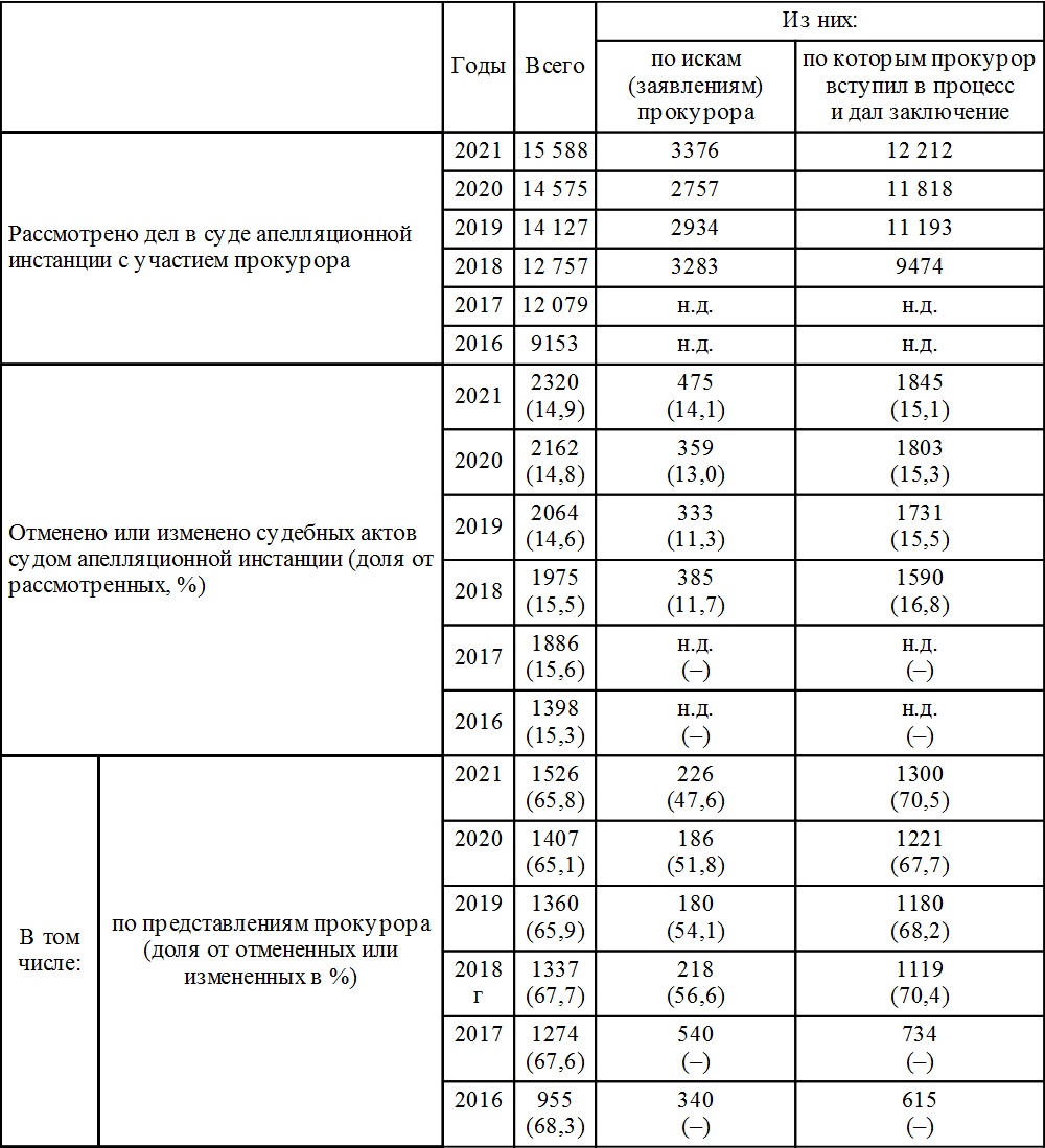 Участие прокурора в апелляционном пересмотре судебных актов по административным делам в 2016–2021 гг.