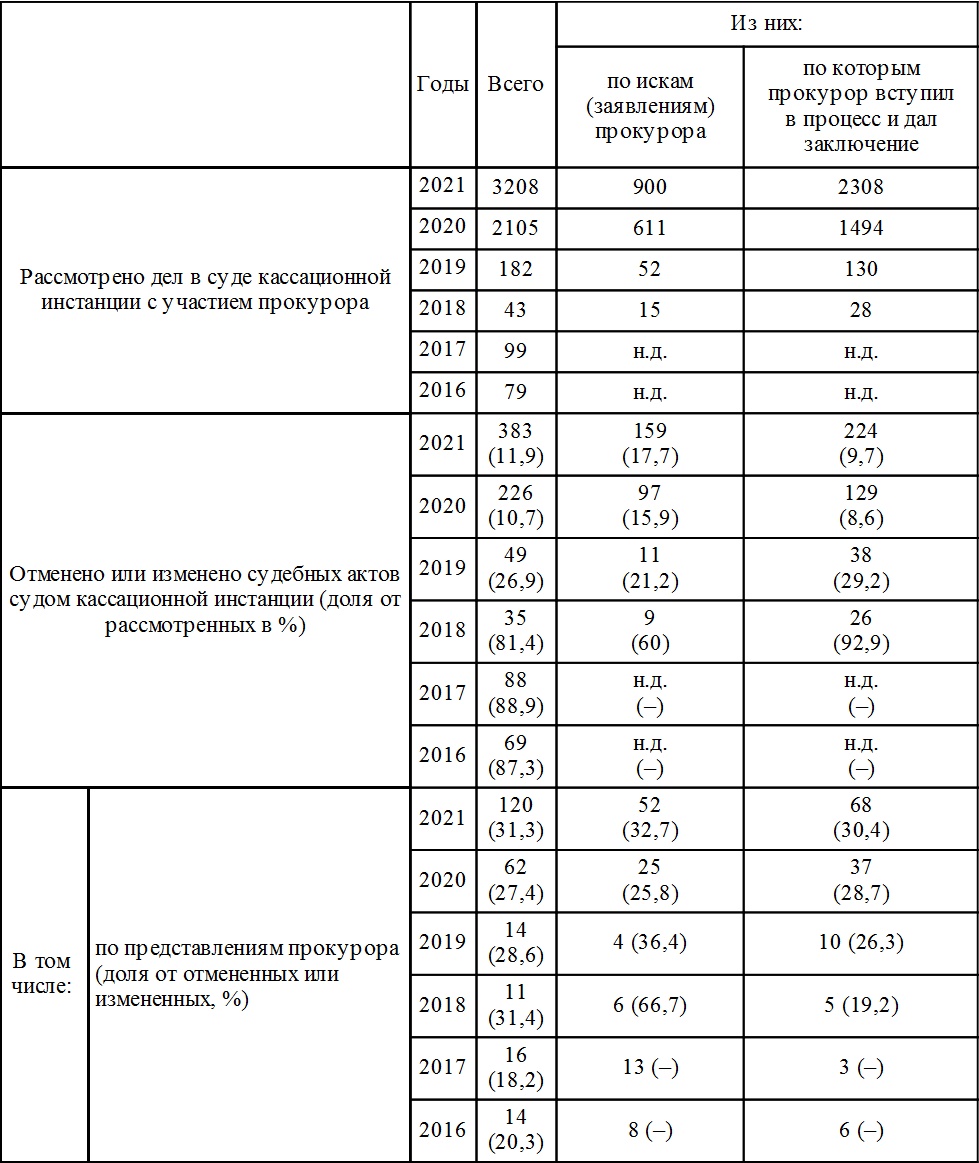 Участие прокурора в кассационном пересмотре судебных актов по административным делам в 2016–2021 гг.