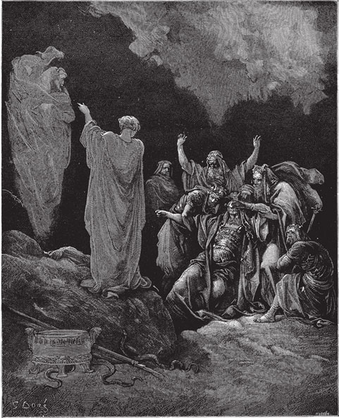 САУЛ У ВОЛШЕБНИЦЫ В АЭНДОРЕ. ПЕРВАЯ КНИГА ЦАРСТВ, ГЛ. 28, СТ. 14. …выходит из земли муж престарелый, одетый в длинную одежду. Тогда узнал Саул, что это Самуил…