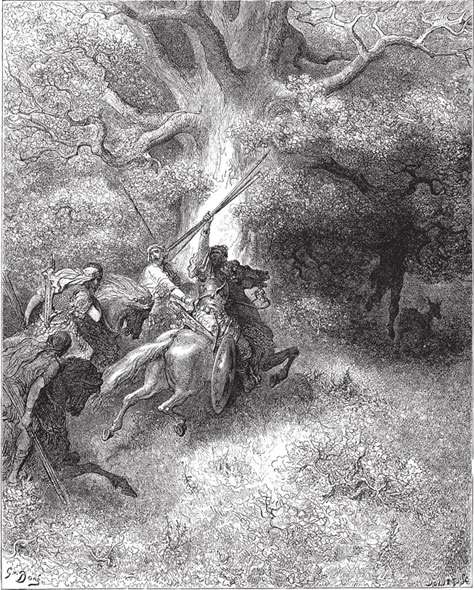 СМЕРТЬ АВЕССАЛОМА. ВТОРАЯ КНИГА ЦАРСТВ, ГЛ. 18, СТ. 9. …Авессалом запутался волосами своими в ветвях дуба и повис между небом и землею…