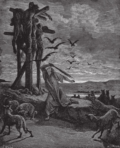РИЦПА ОХРАНЯЕТ ТЕЛА СЫНОВЕЙ. ВТОРАЯ КНИГА ЦАРСТВ, ГЛ. 21, СТ. 10. …пока не полились воды Божии с неба, и не допускала касаться их птицам небесным днем и зверям полевым ночью.