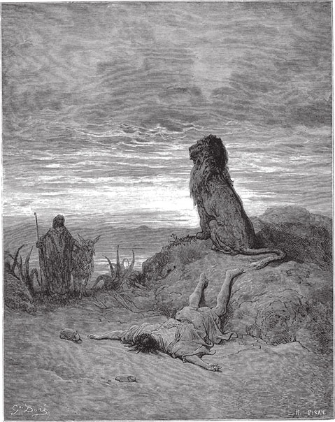 Когда нечестье ИеровоамаПосланник Господа сурово обличил,По слову Еговы пошел домой он прямоИ в доме у царя он пищи не вкусил.Но увещаниям маститого пророкаПоддавшийся, к нему решился он зайти,И покарал Господь ослушника жестоко:Лев погубил пришельца на пути.И старец труп его увидел на дороге;Над ним, свершивший казнь, стоял недвижно лев,И старец зарыдал в смятенье и тревоге,И ужасом его потряс Господень гнев.С печалью искренней земле он предал телоВ гробнице у себя, сказав сынам своим:«Когда достигну я житейского предела,Меня земле предайте рядом с ним».Исполнятся во всей пророческой их силеСлова, которые уста его рекли:И сокрушатся капища в ВефилеИ будут сметены навек с лица земли!