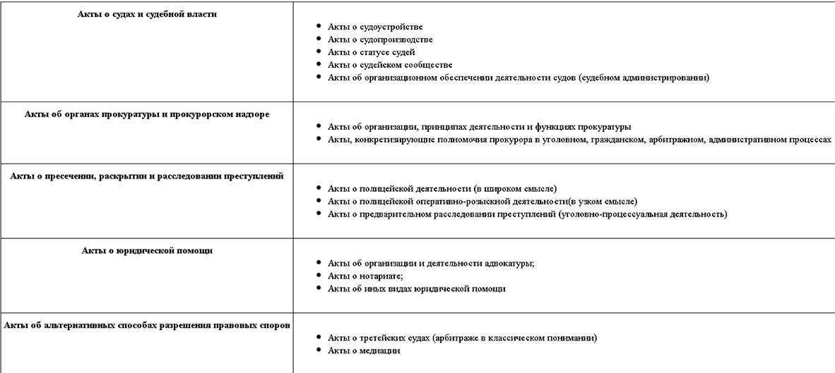 Специфика правового регулирования организации и деятельности судов и иных правоохранительных органов такова, что в названной сфере нет актов исключительного ведения субъектов РФ.