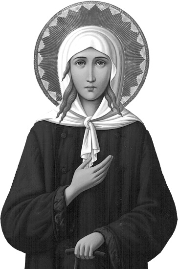 Ра́дуйся, и́менем му́жеским наре́кшися, не́мощи же́нския отреши́вшаяся; ра́дуйся, печа́ли и ско́рби кро́тце терпе́вшая.