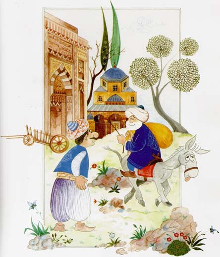 Понял тут еврей, что миром дело не решить, и предложил пойти в суд. «От суда я не отказываюсь, – сказал на это Ходжа, – только идти туда пешком мне не к лицу». Еврей привел прекрасного мула. Ходжа продолжал: «Я человек не простой. Как могу я предстать перед судьей в такой старой шубе?» Тогда еврей принес ему великолепную шубу и посадил на мула.