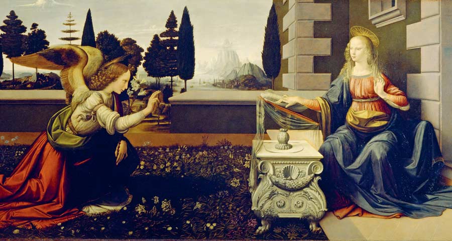 Леонардо да Винчи. Благовещение. Флоренция, галерея Уффици