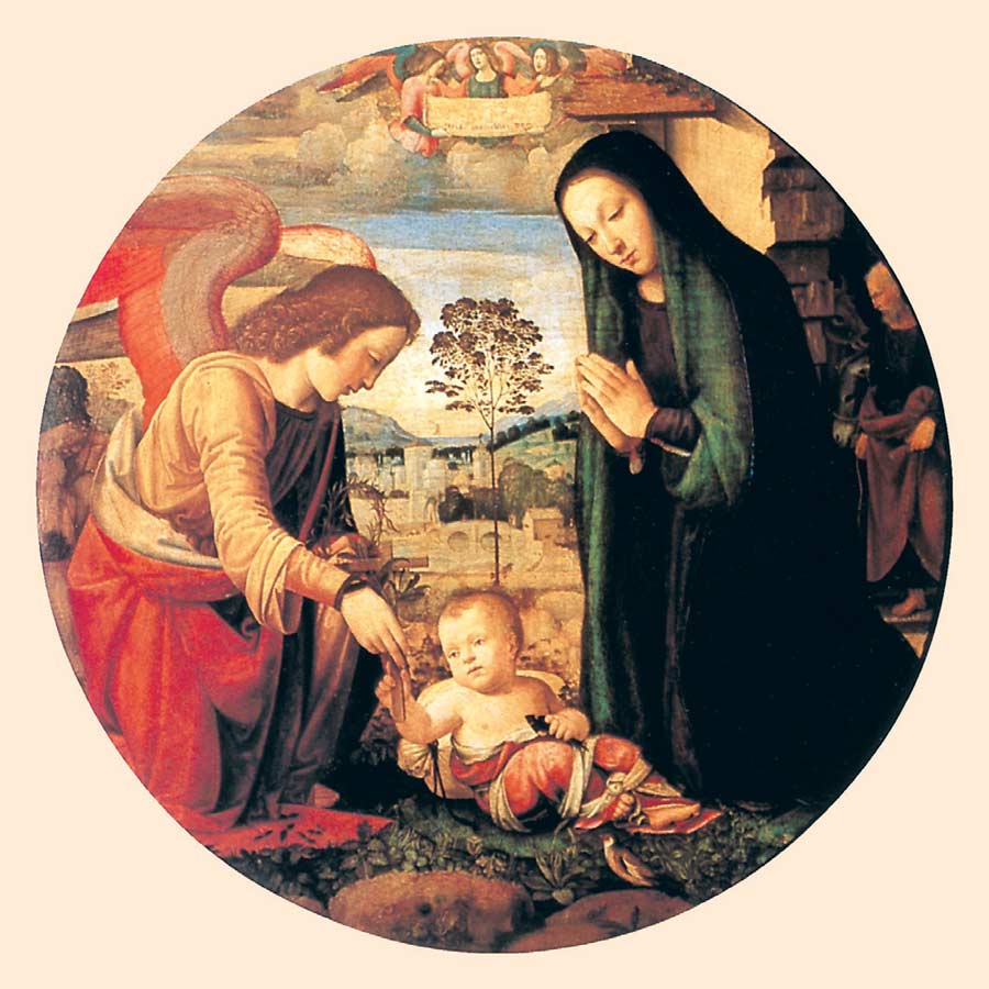 Мариотто Альбертинелли. Поклонение Младенцу с ангелом. Флоренция, палаццо Питти, галерея Палатин