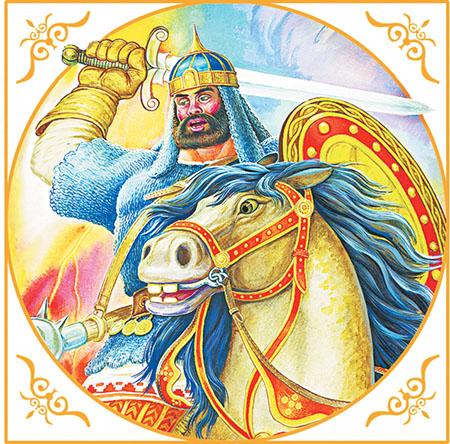 – Коли не убавилось бы у тебя силы, – говорят странники, – не смогла бы тебя носить мать сыра земля. А и той силы, что есть, достанет с тебя. Станешь ты самым могучим богатырём на Руси, и в бою тебе смерть не писана. Купи у первого, кого завтра встретишь на торжище, косматенького неражего[5] жеребёночка, и будет у тебя верный богатырский конь. Припаси по своей силе снаряженье богатырское и служи народу русскому верой и правдой.