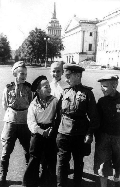 Юные защитники Ленинграда на Дворцовой площади. 1945 год