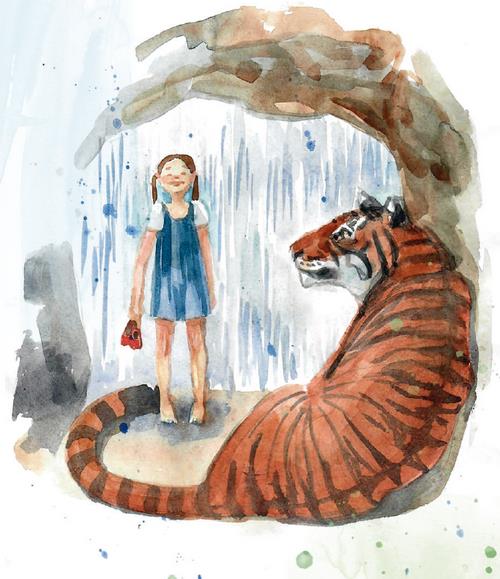 Дождь лил как из ведра. Приятный тёплый майский ливень, наполненный запахом молодой листвы и травы. Сплошная стена воды от неба до земли. Тигр ждал девочку, можно сказать, целую вечность, а она всё не шла и не шла. И вот, о чудо, она явилась мокрая, с улыбкой до ушей. Просто шагнула из дождя и сказала: «Здравствуй, мой тигр». Он уже терял надежду, и вот она здесь и гладит его. Девочка сидела на корточках, а тигр лежал вокруг неё. И можно было подумать, что это и не тигр вовсе, а полосатый разноцветный диван. На огромную тигриную голову, как на пуфик, раз, и облокотилась девочка. Она почёсывала ему за ухом, а он тихо мурлыкал. Идиллия, да и только! Пещера, в которой они пережидали дождь, была глубокой. Повсюду лежала сухая трава, где-то далеко скрипел сверчок. Девочка принесла в руках сандалии, и теперь они стояли возле маленькой лужицы. Платье было мокрым насквозь и теперь сохло от звериного тепла прямо на хозяйке.