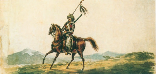 Михаил Лермонтов. Кавказский горец верхом. 1836 Акварель