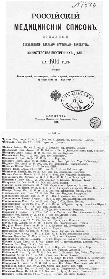 Страница «Российского медицинского списка» с упоминанием П. А. Чурова, 1914 г.