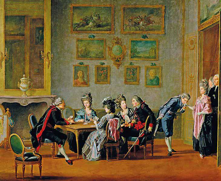 В то время дамы играли в фараон. Однажды при дворе она проиграла на слово герцогу Орлеанскому что-то очень много. Приехав домой, бабушка, отлепливая мушки с лица и отвязывая фижмы, объявила дедушке о своем проигрыше и приказала заплатить.