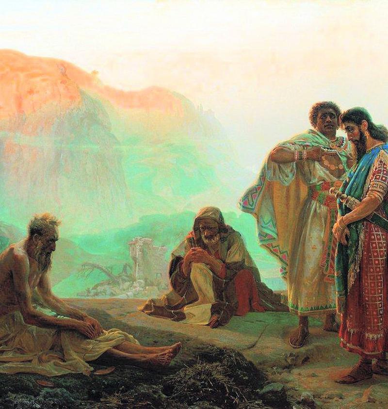 После написания картины «Ангел смерти избивает всех первенцев египетских» уже через четыре года «Репин является уже сильно выросшим художником, когда, весной 1869 года, получает свою 2-ю золотую медаль за академическую программу: “Иов и его друзья”… Ветхозаветный сюжет ничуть не приходился по вкусам и натуре молодого Репина; просыпавшийся в ту минуту талант влёк его совершенно в иную сторону, но он, конечно, подчинялся требованиям школы и извлёк из задачи весь возможный драматизм, но прибавил тут, самым оригинальным образом, те живописные мотивы древнего Востока, которые шевелились в его фантазии после лекций из истории искусства.