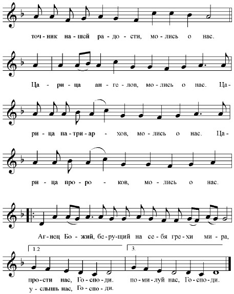 Предстоятель: Молись о нас, Пресвятая Богородица. Все: Да удостоимся исполнения Христовых обещаний. Предстоятель: Помолимся.