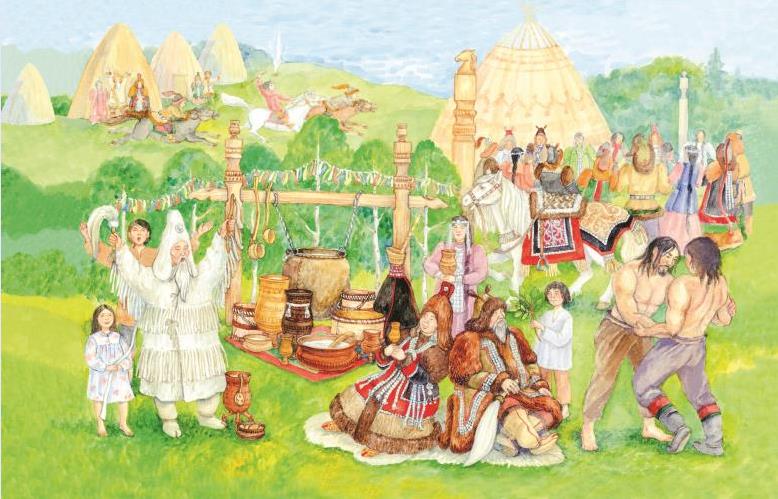 Сошлось довольно много людей. Эллэй всех собрал в одном месте, поил-потчевал их кумысом и кушаньями.