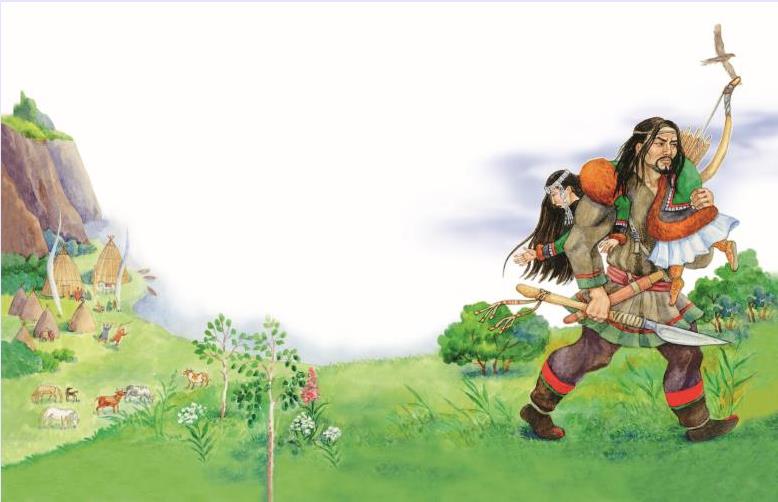 – Эта куропатка – самая лучшая моя птица. У неё холодная родина, поэтому ей даю двенадцать яиц. Подойди и возьми, – сказал. Куропатка обрадовалась, глаза загорелись, спотыкаясь, она торопливо подошла и взяла яйца. Оттого, что куропатка взяла много яиц, гагара ещё больше разозлилась, сильно возмутилась, вскочила, выдернула свой лук и стрелы, подняла крик и шум.