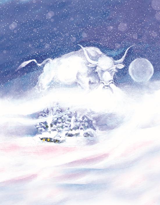 14 октября, Покров день. Бык выходит из Ледовитого океана, на Срединный мир наступает зима. У него ещё нет рогов, но даже его дыхание приносит холод и мокрый снег.