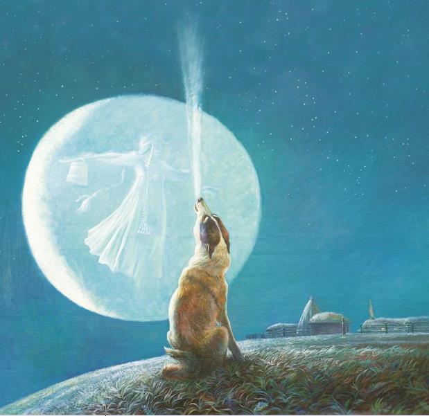 Однажды осенью хозяйка дома опять отправила девушку по воду. Был поздний вечер, луна светила вовсю. Подошла девушка к проруби, нагнулась воды зачерпнуть и совсем близко в воде увидела луну. Так близко была луна, что казалось, наверное, услышит её, если с ней поговорит. Заплакала девушка и стала жаловаться на свою судьбу: «Луна, луна, меня очень обижают, и некому за меня заступиться. Только собаки хорошо ко мне относятся. И я их тоже не забываю. Едой делюсь. Вот собаки меня и любят. А от людей ласки не вижу. У тебя, наверно, там хорошо, тепло, светло. Когда ты появляешься, я всегда смотрю на тебя. Возьми меня к себе. Здесь мне плохо. Забери меня, луна, отсюда!»