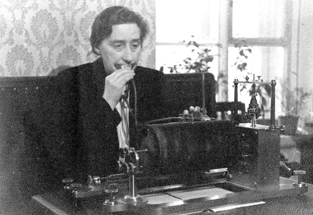 М. И. Матусевич в Лаборатории экспериментальной фонетики у кимографа