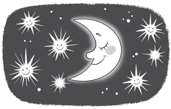 Наступает звёздный час —Это, звёздочки, для вас,Чтоб сиялось весело,Ночь луну и светлячковНа небе развесила!С. Сон