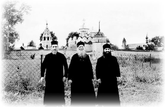 Батюшка с архимандритом Никоном, настоятелем Шартомского монастыря (слева), и протоиереем Виктором Мноян (справа) под стенами Суздальского монастыря
