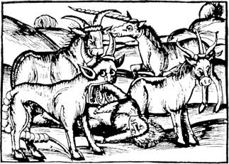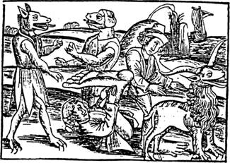 дикие быки, стрельцы, дикие люди, рогатые люди, фавны, сатиры и женщины той же породы, пигмеи, кинокефалы, гиганты высотой в четыреста локтей, одноглазые, циклопы и птицы, называемые фениксами, и почти все виды животных, какие только существуют на свете.