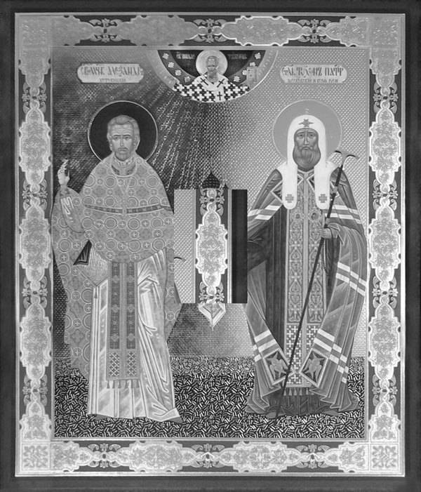 Святейший Патриарх всея России Тихон и священномученик Александр Хотовицкий. Икона Свято-Николаевского патриаршего собора в Нью-Йорке