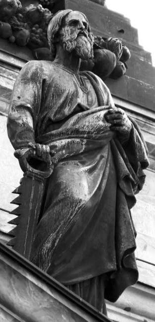 Фигура апостола Симона Кананита над фронтоном Исаакиевского собора в Санкт-Петербурге. Скульптор И.П. Витали.