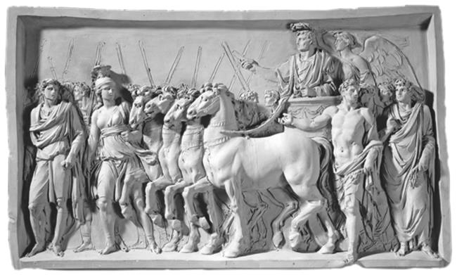 Наступил день триумфа Мария. Таких пышных триумфов давно не видели в Риме. Главным украшением – среди массы золота, слоновой кости и оружия – был сам Югурта, идущий в цепях перед колесницей Мария. Но Марий недоволен и угрюм. Он знает, что там, среди бесконечно шествующих рядов победного войска, идет квестор Сулла, и на руке у него большой перстень, с изображением сцены, как Бокх передает Сулле связанного Югурту. Он знает, какие слухи и толки пускают по городу нобили: первым разбил Югурту – толкуют они – нобиль Метелл, и в плен взял нобиль Сулла; значит, им, а не Марию, честь и слава.