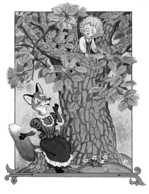 Совсем волк отощал, пришлось пропадать с голоду. Просит он Мальчика с пальчик:
