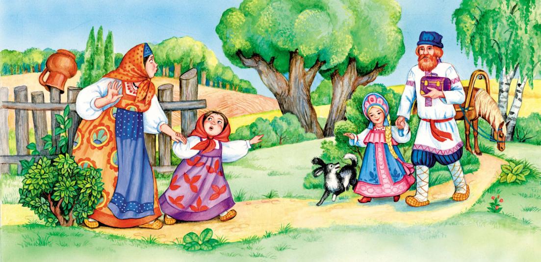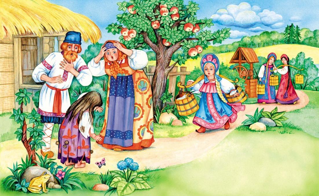 Жили-были старик со старухой, и были у них две дочки: старшая – старикова, умная да работящая, младшая – старухина, глупая и ленивая.