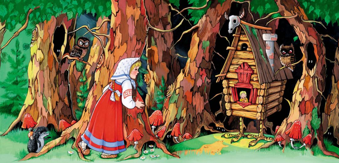 Отец, глядя на муки дочкины, не выдержал и повёз её в лес. Едут – видят избушку на курьих ножках.