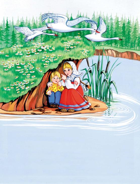 Прибежала девочка, глядь – нет братца! Выбежала в чистое поле. Видит: вдали метнулась гусиная стая.