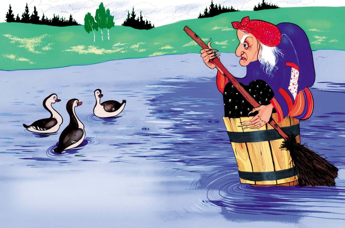 – Беги по тропинке, никуда не сворачивай. В самой чаще увидишь избушку на курьих ножках. Там живёт Баба Яга и её слуги – гуси-лебеди.