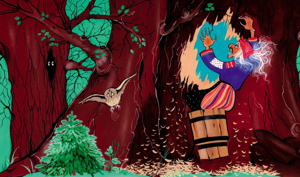 В тот же миг вырос огромный дремучий лес до небес, Баба Яга его грызла-грызла – не прогрызла, и пришлось ей вернуться обратно в избушку.