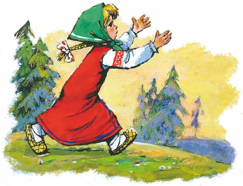 Бросилась девочка гусей догонять. Бежала, бежала… Но вскоре они скрылись из глаз. Куда теперь бежать?