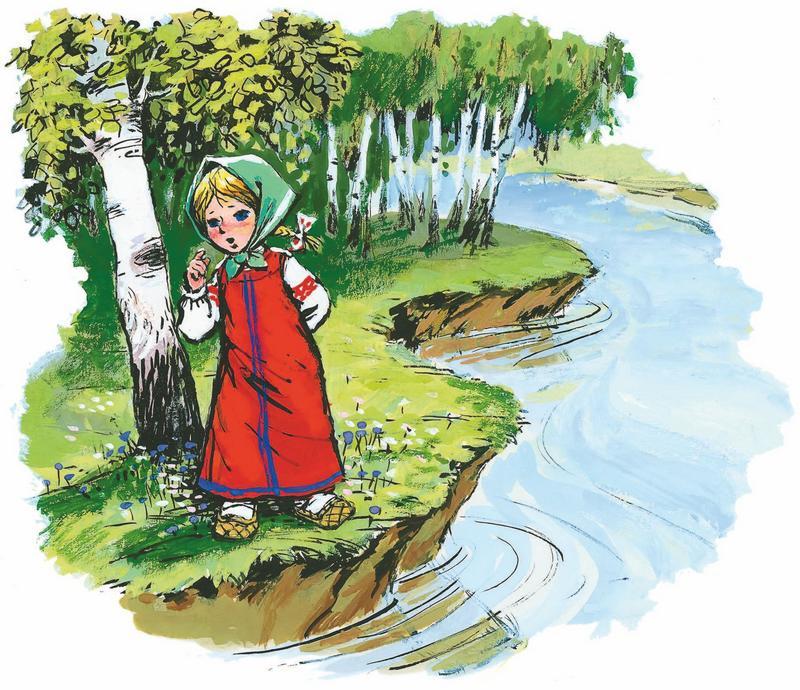 Увидела тут она: течёт молочная речка, кисельные берега. Подбежала к молочной речке, спрашивает: