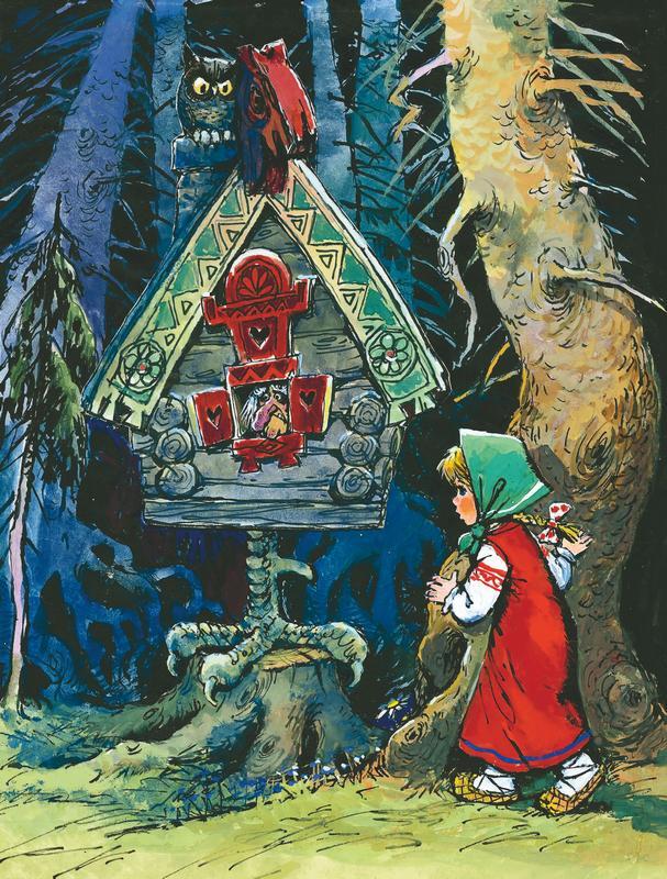 Вдруг увидела она: избушка на курьих ножках кругом себя поворачивается. Сказала тут Манечка:
