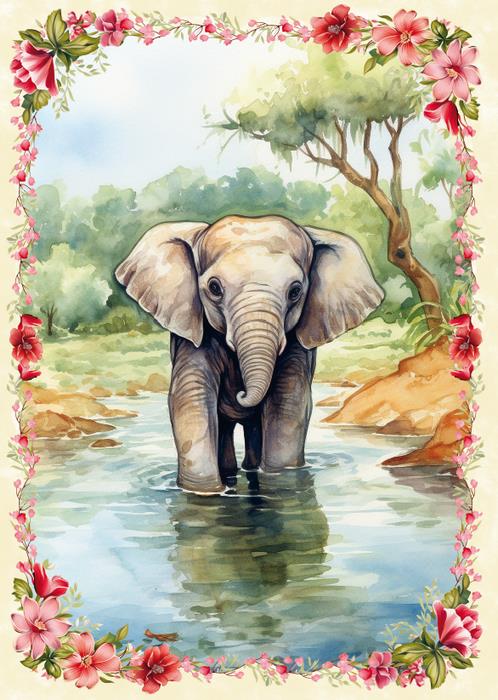 Утро начиналось как обычно,Шёл слонёнок берегом рекиИ увидел: как-то необычноРасставляют сети рыбаки.Вот такая рыбаков работа,Вот такая у людей судьба.Но успел слонёнок вдруг заметить —Затянуло в реку рыбака.Из последних сил в воде держался,Голова скрывалась под водойИ над тиной снова поднималась,А потом скрывалась под волной.И стоят в оцепенении люди.Кто решит на риск сейчас пойти?Принял вдруг решение слонёнок:Может человека он спасти.Бросился, не думая, и рекуПереплыл, теченье покорил.Сунул хобот в руки человекаИ собой от волн его закрыл.Дотянуть до берега непросто,Но слонёнок бился до конца.С человеком плыл, в спасенье веря,И спасал простого рыбака.А затем на берегу зелёномОн лежал и слышал голоса.А когда глаза открыл, увиделСвоего сурового отца.Слон людские слушал поздравленья,Да и по-слоновьи был он горд —Понял слон: в семье его слоновьейНастоящий слон уже растёт!«Встретились однажды у ручья…»