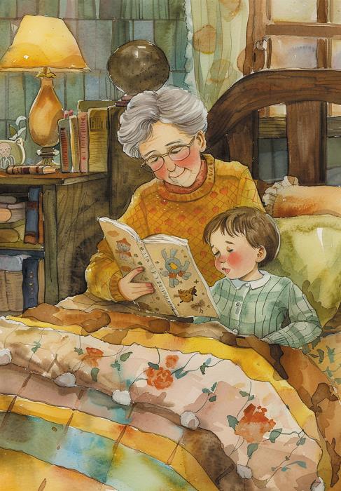 Мне бабушкаЧитает сказку.Я засыпаю,Слушая её.Спасибо бабушкеЗа ласкуИ очень тёплоеПлечо.Меня она качаетТихо,Не отрываясьОт страниц,И в голосе еёЯ вижуМельканье Перьев дивныхПтиц.