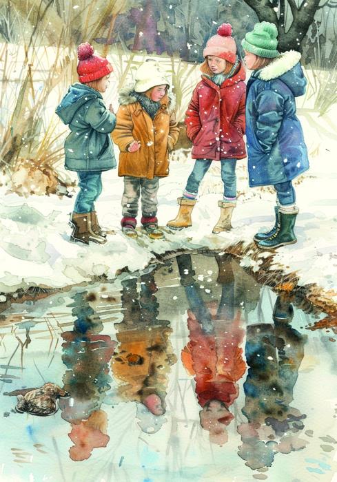 Ребята из средней группы детского сада гуляли на площадке перед садиком. Было грязновато кругом: снег почти растаял, лужи были внушительные, одна больше другой, бегать особенно не хотелось. Дети собрались в кучку и о чём-то оживлённо беседовали.